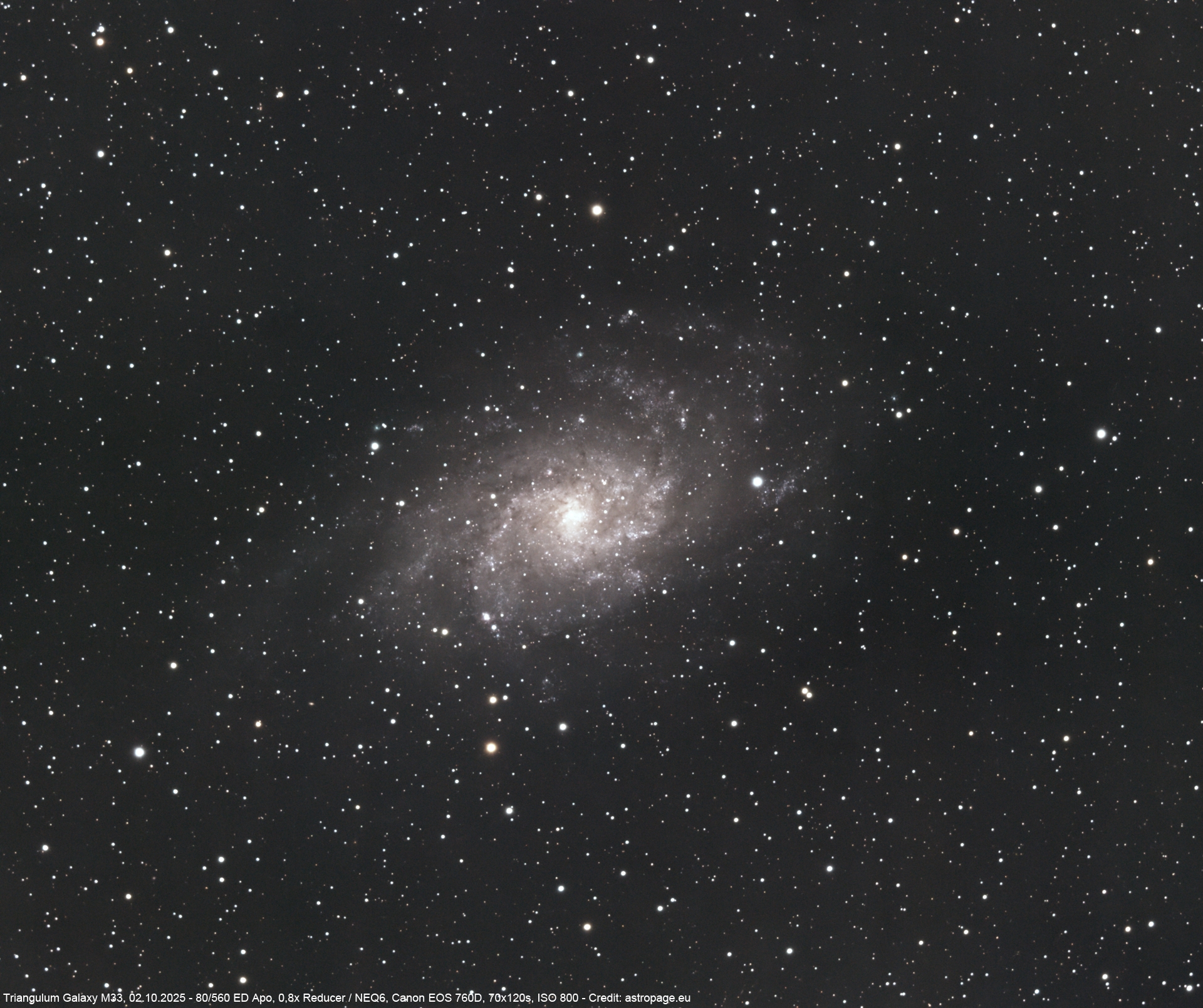 A galaxy is a huge grouping of billions of stars like our own galaxy the milky way. There are galaxies of nearly all shapes and sizes as several sky surveys have shown. The most famous galaxies are included in the Messier catalogue and can be observed with moderate amateur telescopes. But you have to keep in mind that galaxies always appear as grey and wispy specks when viewed live through a telescope. Depending on the sky quality (darkness) and on the experience of the observer, more or less details can be recognized. More details and colorful views can be achieved with longtime exposures which the human eye isn’t able to do. The following album contains images of different galaxies which were taken with several instruments and cameras, sorted chronologically. Detailed information on the equipment is given in the images. If you have any questions about the instruments or the used processing techniques, please contact us via the social networks or email. We’re looking forward to help you. :)